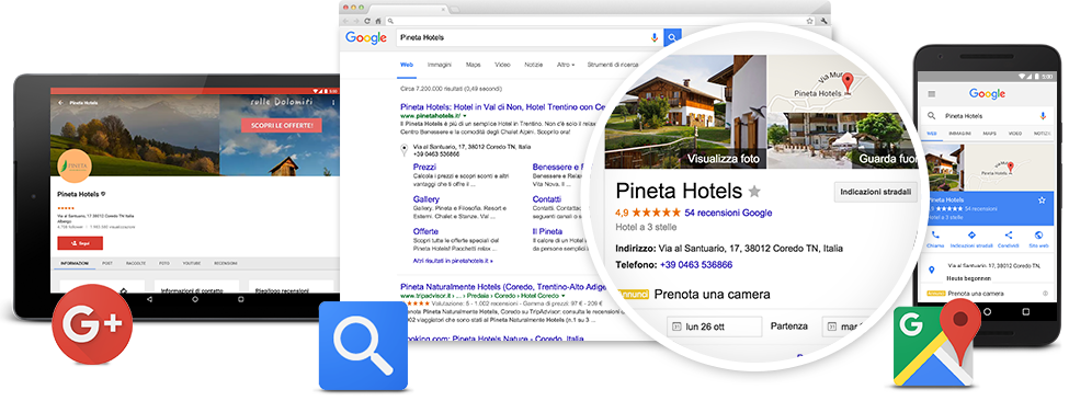 su Maps e Google+ in modo che i clienti possano trovarti, indipendentemente dal dispositivo che stanno utilizzando.